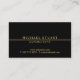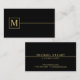 En svart och guld lyxaktig elegant som anger ett monogram i guld professionell font stil med guld gräns på framsidan och affärsinformation i guld professionell font stil på baksidan.