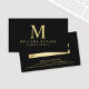 En modern elegant-snyggt i svart och guld med ett monogram och information i stil i guld professionell på svart bakgrund. Perfekt för makeup artist, designer, stylist, konsult, verkstad och många andra yrken. Obs! Folidinformationen simuleras i teckningen. Ingen faktisk folie kommer att användas vid skapar av denna produkt.