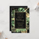 Svarta och Guld Elegant Tropiskt Foliage Bröllop Inbjudningar