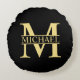 Svarta och Guld Personlig Monogram och Namn Rund Kudde