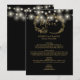 Med vackra strängljus och rustik blomsterkrans handritade illustrationer kan du anpassa denna stilrena svarta och gyllene meny med din speciella bröllopsdags menyinformation. Designad av Thisisnotme©