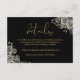Detta eleganta svarta och gyllene blomsterrosor gotiska bröllopsdetaljer inklusionskort kan anpassas med din information i chic typografi. Designad av Thisisnotme©