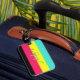Svarta och Neon Färg Block Rand Monogram Namn Bagagebricka