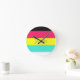 Svarta och Neon Färg Block Rand Monogram Namn Rund Klocka
