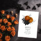 Faux foil halloween gothic bröllopsinbjudning med svart och orange ro och ett skalldammmönster. Perfekt för ett trädgårdsbröllop eller ett givet tema.