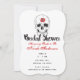 Svarta och röda rosen bröllopsfest skelett skalleben inbjudan