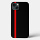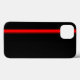 En svart iphone case med en röd tävla rand längs sidan.