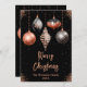 Skicka varma välgångsönskningar med det här sofistikerade julkortet i platt design med fem eleganta utsmyckningar i svart och roséguld. Varje utsmyckning visar upp en unik design - blommig, snöflinga, droppande falskt glitter, diamantmönster och stjärnor - mot en rik svart bakgrund med roségulda gnistor. Den lyxiga paletten och det raffinerade arrangemanget gör detta kort perfekt för stiliga familjer, formella välgångsönskningar eller företags julmeddelanden. Perfekt för de som älskar modern elegans med en festlig twist.