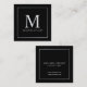 Svarta och Silver Elegant Monogram Fyrkantigt Visitkort