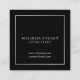 Utformning av snyggten i elegant med monogram, namn och detaljer i stil med professionell i silver med gräns i kvadrat med silver på svart bakgrund. Perfekt för konstruktör, stylist, konsult, verkstad och många andra yrken. Obs! Folidinformationen simuleras i teckningen. Ingen faktisk folie kommer att användas vid skapar av denna produkt.