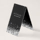 Skapa dina egna personlig tält necklace-kort för visning av små handgjorda smycken. Bakgrunden är ett starkt svart färg med ett faux glatt silver glitter. Anpassa det storleka teckensnittet efter behov för contemporaryn namnteckning stil-kalligrafi och modern minimalistisk webbplatstext. Texten och teckningen är både på framsidan och baksidan för personer som vill klippa ut den här produkten i två separata kort med en kortslutare när du har tagit emot objektet.