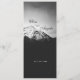 Svarta och vita bröllop under bergen. Fotografi av ett snö täckt berg med mörker under och vitt grumligt himlar över. Namn av paret är i svart typsnitt ovanför berget i himlar och alla detaljer är i vitt typsnitt under berget. Fullständigt anpassade och anpassningsbara bröllop-produkter.