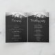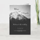 Svarta och vita bröllop under bergen. Fotografi av ett snö täckt berg med mörker under och vitt grumligt himlar över. Namn av paret är i svart typsnitt ovanför berget i himlar och alla detaljer är i vitt typsnitt under berget. Fullständigt anpassade och anpassningsbara bröllop-produkter.