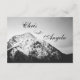 Svarta och vita bröllop under bergen. Fotografi av ett snö täckt berg med mörker under och vitt grumligt himlar över. Namn av paret är i svart typsnitt ovanför berget i himlar och alla detaljer är i vitt typsnitt under berget. Fullständigt anpassade och anpassningsbara bröllop-produkter.
