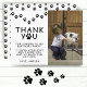 Söta svarta och vita fötavtryck Födelsedags Tacksamhets Foto Postkort för barn. Sött foto födelsedags tacksamhets kort med fötavtryck, tacknota, en fotomall och ett barns namn. Infoga ditt foto i mallen och anpassa med ditt namn. Ändra eller behåll tacksamhetsmeddelandet.
