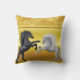 Svarta och vita hästar som slåss mot guld kudde
