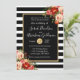 Svarta och vita Rand Blommor Ro Bröllop Inbjudningar