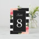 Svarta och vita ränder med bordnummer i peoniform inbjudningar