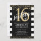Dessa svarta och vita ränder med guld-inbjudningar är perfekta för alla födelsedagar! Ändra åldern för att hedra din hedersgäst på deras speciella dag.
