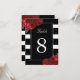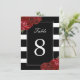 Svarta och vita ränder med röda rosor nummerskyltar - Skapad av Colourful Designs Inc. Upphovsrätt 2013-2016. All text kan ändras.