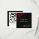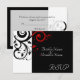 Liten RSVP-kort som matchar vår svarta och vita röda omvända virvlande bröllopsinbjudan, med fet grafisk virvlande bladbakgrund. Anpassa online med din bröllopsinformation.