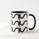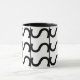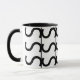 Svarta och vita Vågigt Rand Mönster Mugg. Enkelt svart vågigt rand sömlöst mönster på vit bakgrund.