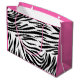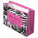 Svarta och vita zebra mönstrad presentpåsar för födelsedagar. En shock rosa i mitten där du kan placera texten.