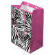 Svarta och vita zebra mönstrad presentpåsar för födelsedagar. En shock rosa i mitten där du kan placera texten.