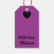 Svarta polkahjärtan på lila presentetikett