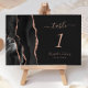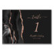 Det moderna bordsnumret i bröllop har ett svart vattenfärgat agat i gräns som trimmas med faux ro guld glitter i i den lämnat kant i eleganten. Anpassadet kombinerar handskrift för ro rosa med kursiv och kapslad typsnitt mot svart bakgrund.