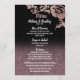 Elegant, chic och enkel, modern utskrift av ro guld glitter, blommor och typografi på modesta svarta bakgrunder, bröllopsmenykort. Den här klassiska och sofistikerade designen är perfekt för klasser, snyggtar och trendigets bröllopsmottagning. Anpassa med din egen meny på framsidan, tillsammans med namn och data. Anpassa sedan baksidan med ditt monogram som första steg. All fotoutskriftsdesign.