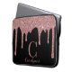 Girly Ro Gnistra Glitter driver Monogram laptop sleeve med trendiget faux glitter droppar i Guld/rosa ro i guld mot chicens svarta bakgrund. Designad av Cedar och String. Om du vill anpassa dig ytterligare klickar du på länken "anpassa ytterligare" och användor designen verktyg för att ändra designen. Kontakta oss om du behöver hjälp eller matchande artiklar.