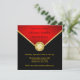 Eleganta röda, gyllene och svarta inbjudningar för speciella tillfällen och födelsedagsfester för milstolpsfirande. Anpassa den för ditt speciella evenemang. Dekorationerna som visas är INTE ÄKTA, de är bilder som trycks på korten.