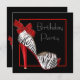 Eleganta röda zebra födelsedagsfestinbjudningar. Denna snygga röda och svarta zebra-högklackade skor födelsedagsfestinbjudan är lätt att anpassa för din fest genom att helt enkelt välja "Anpassa!" för att börja lägga till din evenemangsinformation, teckensnittsstil, teckenstorlek och färg samt formulering. Observera att alla kort- och inbjudningsdesigner du hittar på Zazzle är tryckta grafik utan faktiska juveler, band, upphöjda, präglade eller tillagda delar eller bitar.