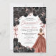 Elegant svart och roséguld blomster Quinceanera födelsedagsinbjudan