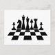 Svarta schackpjäser på ett schackbräde vykort