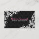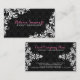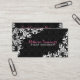 Elegant, vit blommigt snöre roterar över svarta blommigtar, mönster, visitkortsmall. För händelsedesigners, bröllopsfixararna
