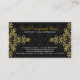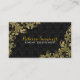 Elegant guld blommigt snöre snurrar över svarta blommigtar mönster, visitkortsmall. För händelsedesigners, bröllopsfixararna