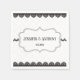 Skapa dina egna personlig bröllop-cocktail-servetter. De här blöjorna har ditt namn och bröllop-datum intill ett ornat ram med ett svart snöre-bildstecken mot en vit bakgrund med ett faux quilted mönster.