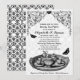 Svarta trädgård bröllops teparty-inbjudningar har en teservis och fjärilar med en blomsterdekoration och utsmyckade mönster i svart, brunt och vitt.