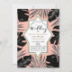 Svarta tropiska blad & korall-persikoguld bröllop inbjudningar