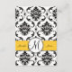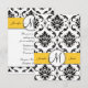 Eleganta svarta och vita Damaskus bröllopsinbjudan mottagning inklusionskort du kan anpassa. En vacker Damaskus mönsterbakgrund framhävs med en cirkulär utsmyckning och monogram ovanpå en gul linje som innehåller brudens och brudgummens namn. Photoshop-effekter med skuggor ger detta kort ett 3D-skickligt utseende som trycks direkt på ditt valda papper. Bröllopsmottagning Kortdesign av Elke Clarke ©2010, 2012. Grafik licensierad. Ett elegant sätt att sätta temat för ditt bröllop. Anpassa med dina bröllopsdetaljer och information om bröllopsmottagning och lägg till din bröllopspaket.