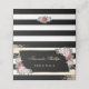 Svartvit blommigt bord-kort eller platskort med elegant, med rosa som ramar in gästblommor och bordsnummer i en namn i guld mot en svart och vit bakgrund med ram konetti. Matchande objekt är tillgängliga.