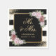 Svartvita, vita, stripade bröllop-pappra blöjor med blommor av rosa och grönaktiga inramning av bröllop i en guld-ram, med elegant konetti mot en svart och vit bakgrund. Matchande objekt är tillgängliga. Svarta och guld blommigt bröllop pappra blöjor. Svartvit blommigt Mr. och Mrs. papper napkins.