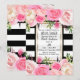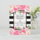 Svarta Vita Ränder Guld Rosa Blommig Bröllopsdusch Inbjudningar
