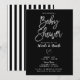Svarta Vita Ränder Silver Chic Baby Shower Inbjudningar