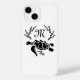 Sjösköldpaddor som simmar i en stamsilhuett stil. Medan originalet baserades på en grönt sköldpadda, skulle formen på de segment som bagaget vrids och vrids. Ovanför snäckan till lämnat och högerna är svart sjögräs som lämnar utrymme för text, är standardvärdet brev "M" m är kort för anpassat monogram. Och under sköldpaddan är vatten-snurrar.