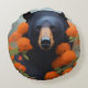 Svartbjörn i Orange blommor Rund Kudde