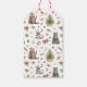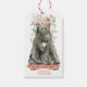 Dessa beundransvärda Juletiketter har en svart björn med blommor. Det finns ett "God jul" hälsning i en röd banderoll och ett ställe för dig att anpassa dig efter ditt namn. Baksidan har en samordnande juldjur mönster.