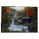 En svart björn i mor och hennes unge vid ett vattenfall i floden.